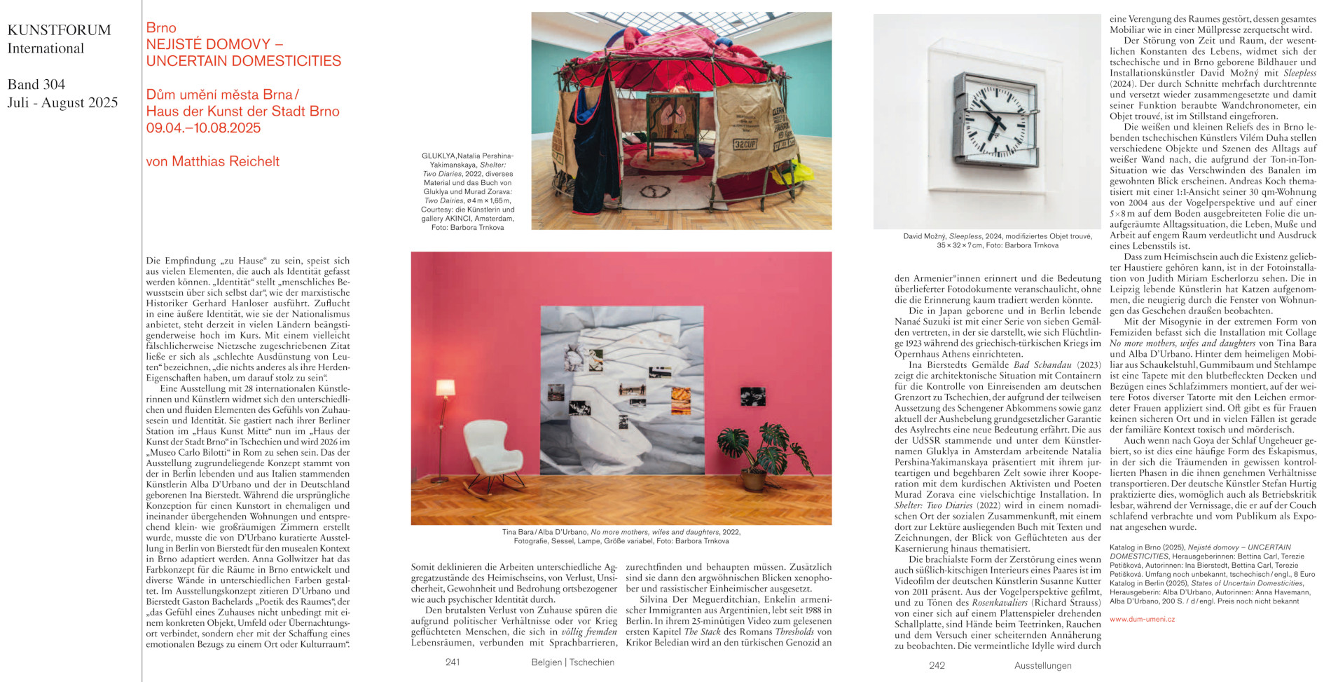 The international exhibition Uncertain Domesticities is a collaboration between the House of Arts Brno, the Berlin-based gallery Haus Kunst Mitte and the Berliner Asyl der Kunst Stiftung Foundation. Two of these institutions have the word "house" in their names, and the diversity of images and meanings of "house" and "housing" in contemporary art has become one of the cornerstones of this project. It was initiated by the Italian curator and multimedia artist Alba D'Urbano and the German painter and curator Ina Bierstedt. The exhibition was first presented in January this year in Berlin, is now on view in Brno and will be held in 2026 at the Museo Bilotti in Rome.