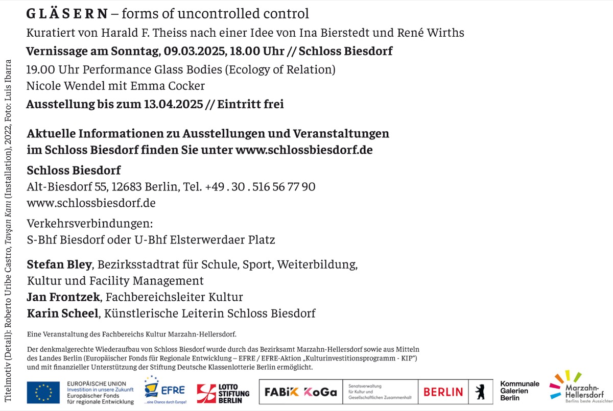 Ausstellungsansicht GLÄSERN, Schloss Biesdorf 2025, Ina Bierstedt, Christians Salon, Foto: Ina Bierstedt
